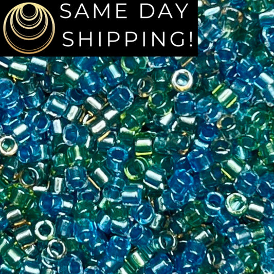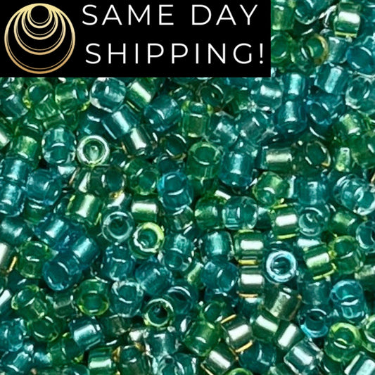 DB984 Same Day Shipping! 1 Gram-20 Grams Miyuki 11/0 Delica Beads Sparkling Lined Aqua Fresco Mix -Free Container! DB0984 DB-984