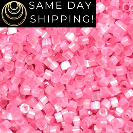 DB1875 (1 Gram -20 Grams) Miyuki Size 11/0 Delica Beads Silk Inside Dyed Lt Carnation AB-Free Container! Same Day Shipping!