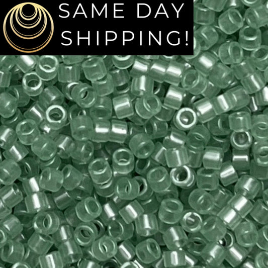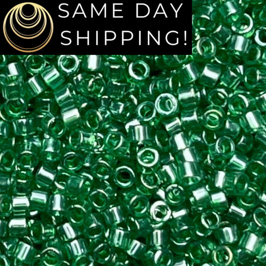 DB1889 (1 gram-20 grams) Miyuki Size 11/0 Delica Beads Transparent Green Luster-Free Container! Same Day Shipping!