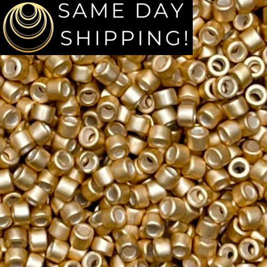 DB1153 (1 gram-20 grams) Miyuki Size 11/0 Delica Beads Galvanized Semi-Matte Honey Gold-Free Container! Same Day Shipping!