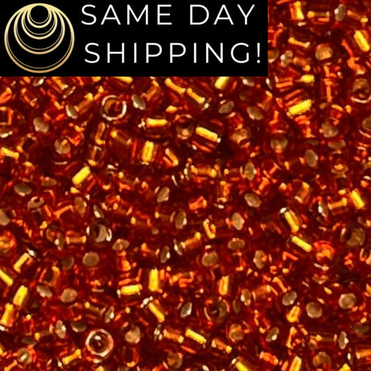 DB1333 (1 gram-20 grams) Miyuki Size 11/0 Delica Beads Dyed Silver Lined Burnt Orange-Free Container! Same Day Shipping!