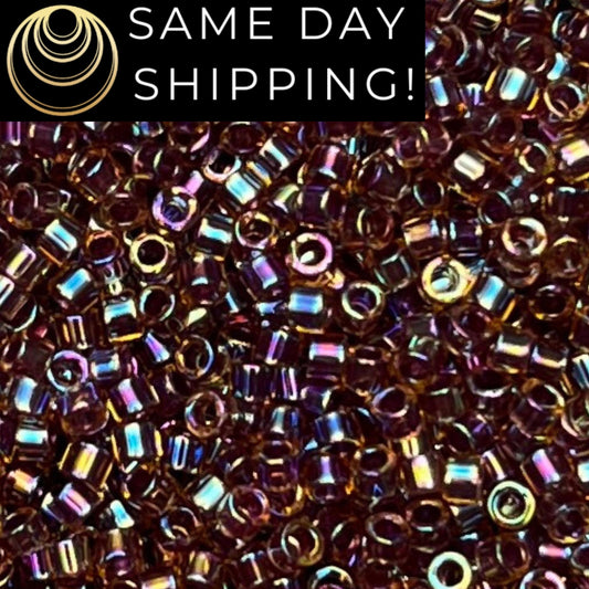 DB091 (1 gram-20 grams) Miyuki Size 11/0 Delica Beads Cranberry Lined Light Topaz AB-Free Container! Same Day Shipping!