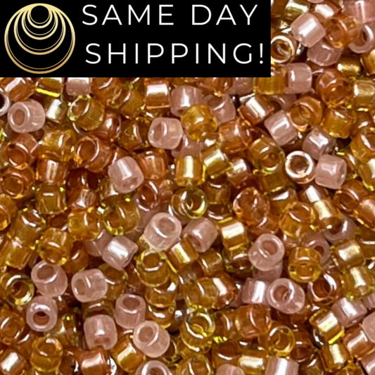 DB987 (1 gram-20 grams) Miyuki Size 11/0 Delica Beads-Free Container! Same Day Shipping! Pink Gold Mix