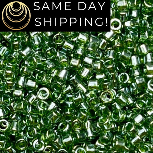 DB1227 (1 gram-20 grams) Miyuki Size 11/0 Delica Beads Transparent Olive Luster-Free Container! Same Day Shipping!