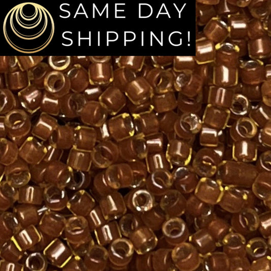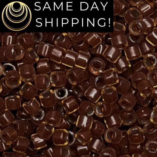 DB1393 (1 gram-20 grams) Miyuki Size 11/0 Delica Beads Dark Topaz Lined Luster-Free Container! Same Day Shipping!