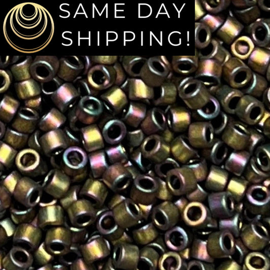 DB1055 (1 gram-20 grams) Miyuki Size 11/0 Delica Beads Metallic Gray Dusk Gold Iris-Free Container! Same Day Shipping!