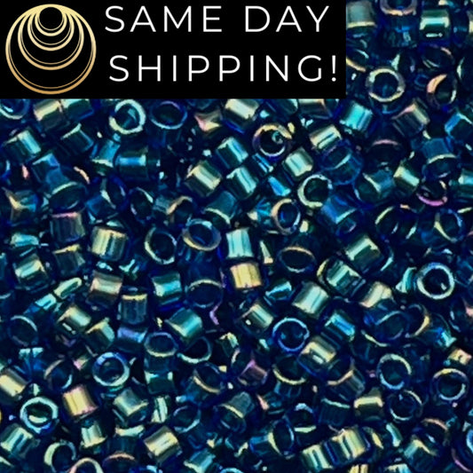 DB1763 SAME DAY SHIPPING! 1-20 Grams Miyuki 11/0 Delica Beads Emerald Lined Cobalt Blue -Free Container!