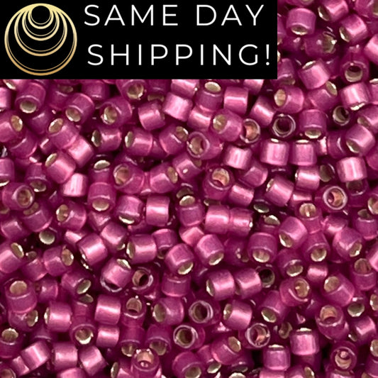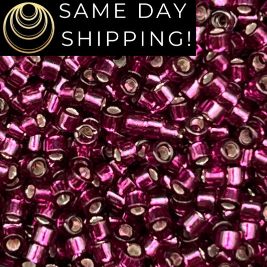 DB1342 SAME DAY SHIPPING! 1-20 Grams Miyuki 11/0 Delica Beads Dyed Silver Lined Raspberry-Free Container!