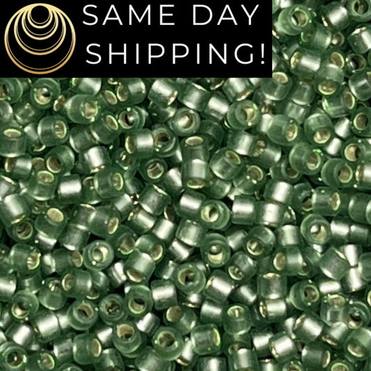 DB689 SAME DAY SHIPPING! 1-20 Grams Miyuki 11/0 Delica Beads Dyed Semi-Matte Silver-Lined Moss Green-Free Container!