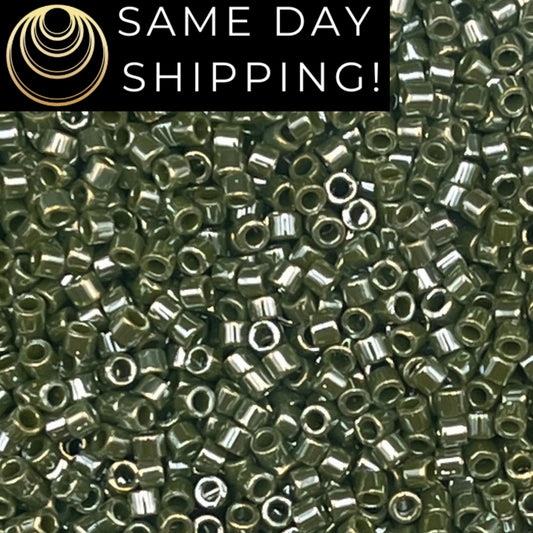 DB1566 SAME DAY SHIPPING! 1-20 Grams Miyuki 11/0 Delica Beads Opaqu Avocado Luster Sparkle -Free Container!