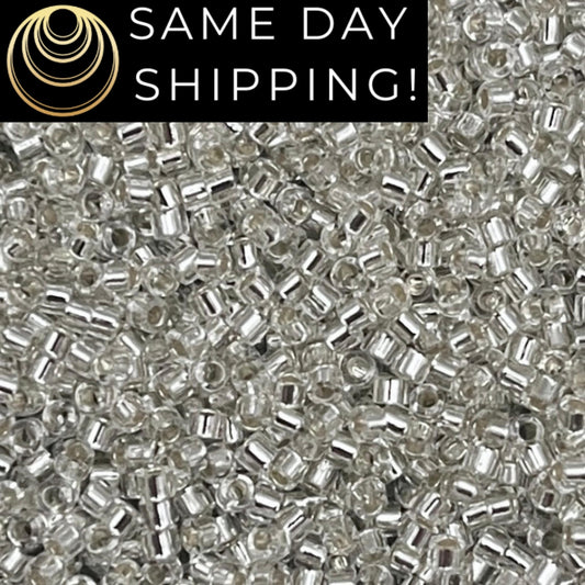DB041 SAME DAY SHIPPING! 1-20 Grams Miyuki 11/0 Delica Beads Silver Lined Crystal, Clear with Silver inside -Free Container!