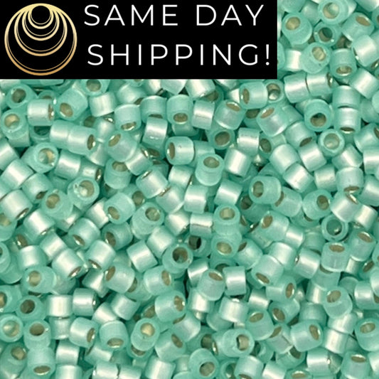 DB626 SAME DAY SHIPPING! 1-20 Grams Miyuki 11/0 Delica Beads Dyed Light Aqua Green Silver Lined Alabaster-Free Container!