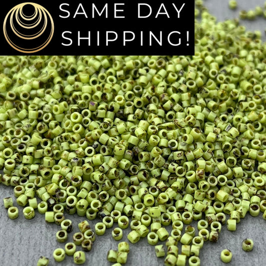 DB2310 SAME DAY SHIPPING! 1-20 Grams Miyuki 11/0 Delica Beads Matte Opaque Glazed Pistachio Free Container!