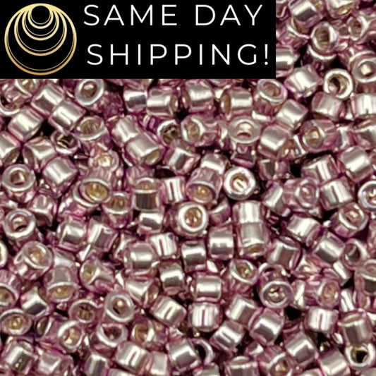 DB1341 SAME DAY SHIPPING! 1-20 Grams Miyuki 11/0 Delica Beads Dyed Silver Lined Antique Rose-Free Container!