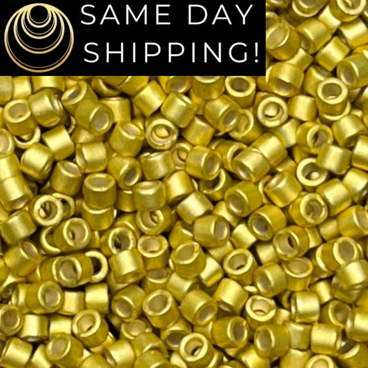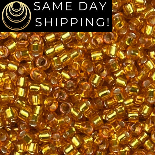 DB2157 (1 gram-20 grams) Miyuki Size 11/0 Delica Beads Duracoat Silver Lined Dyed Yellow Gold-Free Container! Same Day Shipping!