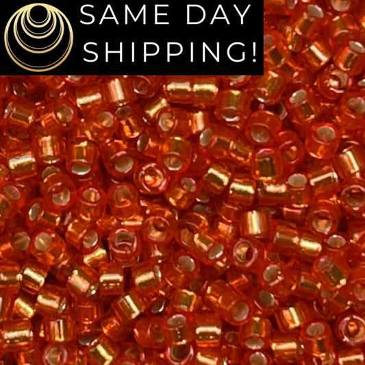 DB2158 (1 gram-20 grams) Miyuki Size 11/0 Delica Beads Duracoat Silver Lined Dyed Clementine-Free Container! Same Day Shipping!