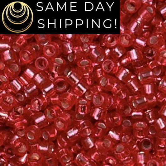 DB2159 (1 gram-20 grams) Miyuki Size 11/0 Delica Beads Duracoat Silver Lined Dyed Cranberry-Free Container! Same Day Shipping!
