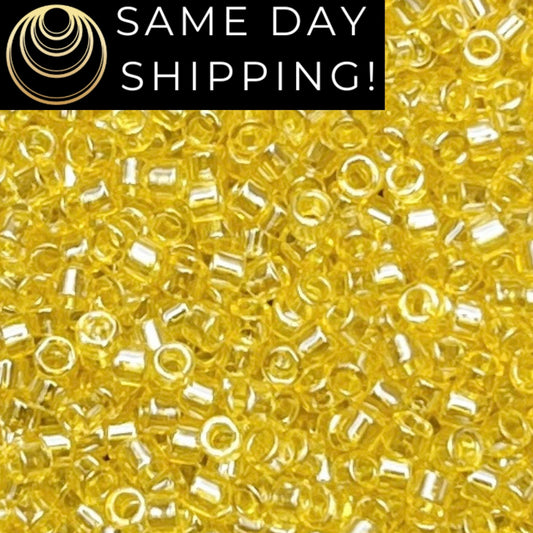DB1886 (1 gram-20 grams) Miyuki Size 11/0 Delica Beads Transparent Yellow Luster-Free Container! Same Day Shipping!