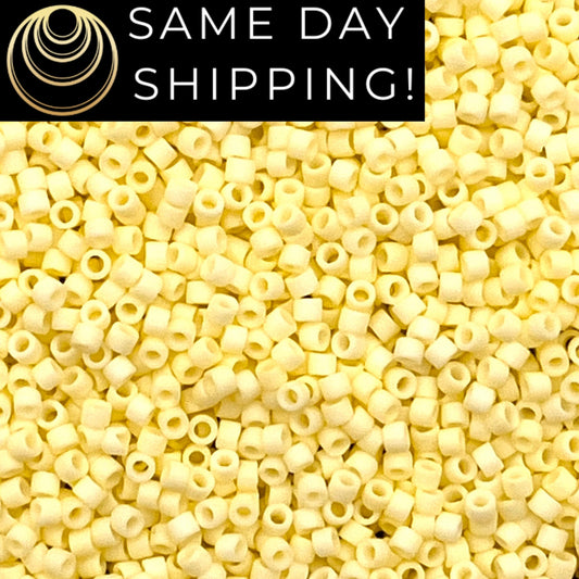 DB1511 SAME DAY SHIPPING! 1-20 Grams Miyuki 11/0 Delica Beads Matte Opaque Pale Yellow-Free Container!
