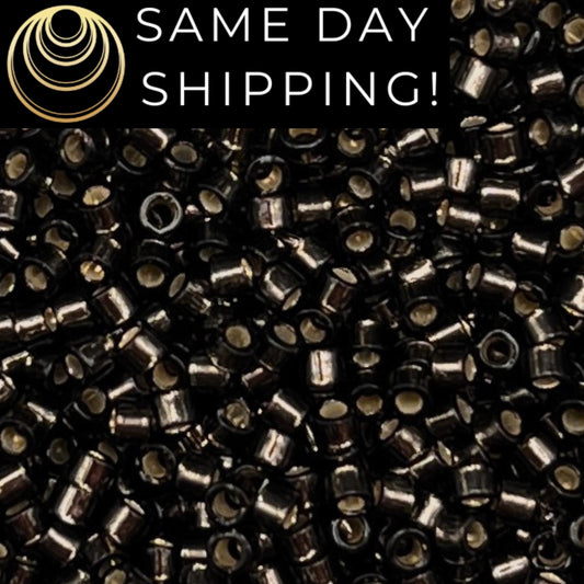 DB613 SAME DAY SHIPPING! 1-20 Grams Miyuki 11/0 Delica Beads Dyed Silver Lined Dark Gray-Free Container!