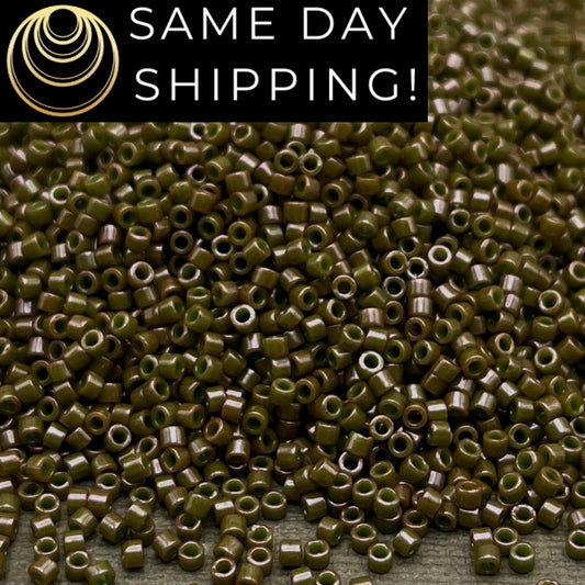 DB657 SAME DAY SHIPPING! 1-20 Grams Miyuki 11/0 Delica Beads Opaque Dyed Olive Army Green Sparkle -Free Container!