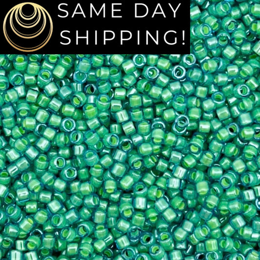 DB2053 SAME DAY SHIPPING! 1-20 Grams Miyuki 11/0 Delica Beads Luminous Mermaid Green, Cylinder Seed Bead, Sea Green Free Container!