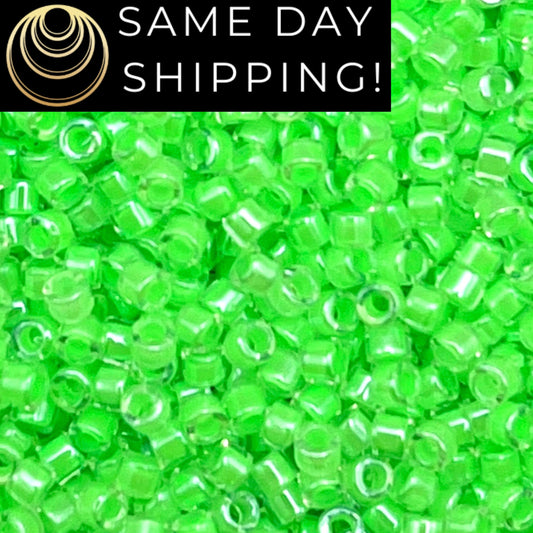 DB2040 SAME DAY SHIPPING! 1-20 Grams Miyuki 11/0 Delica Beads Luminous Lime Green-Free Container!