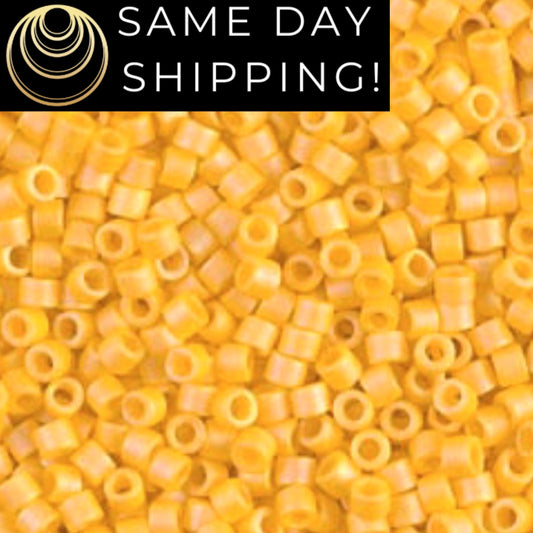 DB1592 SAME DAY Shipping! 1-20 Grams Miyuki 11/0 Delica Beads Matte Opaque Canary AB -Free Container!