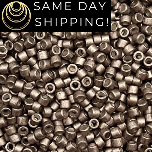 DB1159 SAME DAY SHIPPING! 1-20 Grams Miyuki 11/0 Delica Beads Galvanized Semi-Matte Pewter, Silver Beads, Matte Silver, Free Container!