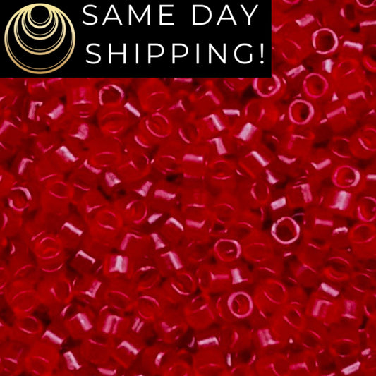DB704 SAME DAY SHIPPING! 1-20 Grams Miyuki 11/0 Delica Beads Transparent Red -Free Container!