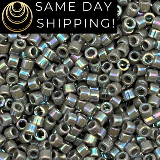 DB168 SAME DAY Shipping! 1-20 Grams Miyuki 11/0 Delica Beads Opaque Gray AB Rainbow -Free Container!