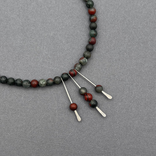 Hand Forged Sterling Silver and Genuine African Bloodstone Beaded Necklace