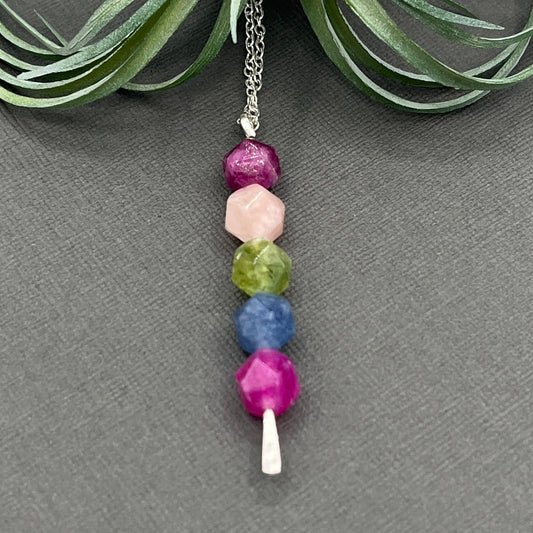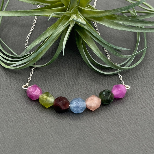 Hand Made Sterling Silver Faceted Genuine Tourmaline Gemstone Bar Necklace