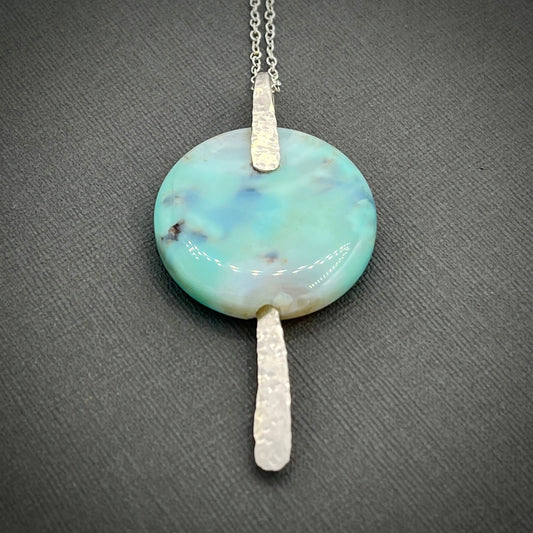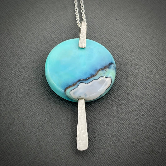 Hand Forged Sterling Silver Ocean Blue Agate Gemstone Pendant Necklace