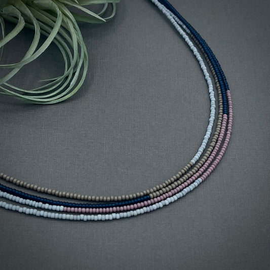 Minimal, Modern, Versatile, Navy Blue, Grey, Light Blue, Purple/Pink Layerable Multicolored Beaded Necklace
