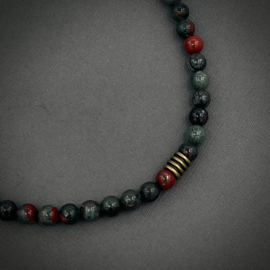 Men’s Masculine Beaded Collar Length African Bloodstone Gemstone Necklace