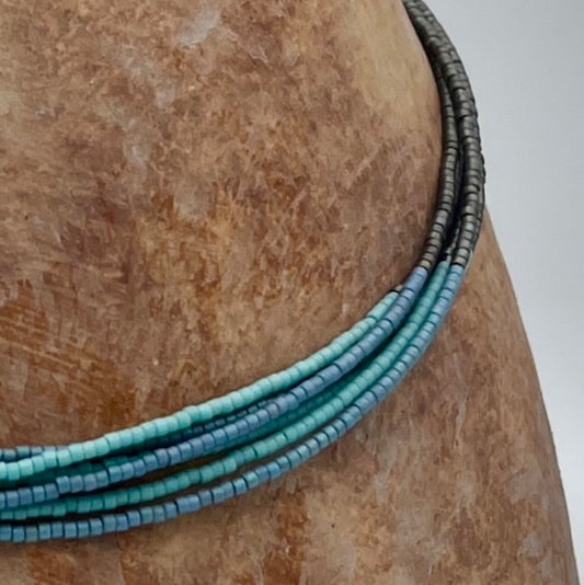 Tropical Storm Five Layer Blue/Green and Gun Metal Seed Bead Adjustable Necklace