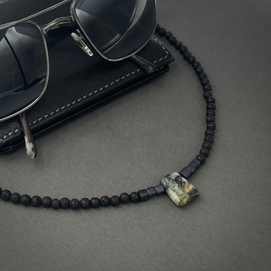 Men’s Masculine Jasper and Lava Stone Beaded Collar Length Gemstone Necklace