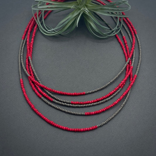 Minimal, Modern, Versatile, Layerable Red and Grey Beaded Necklace