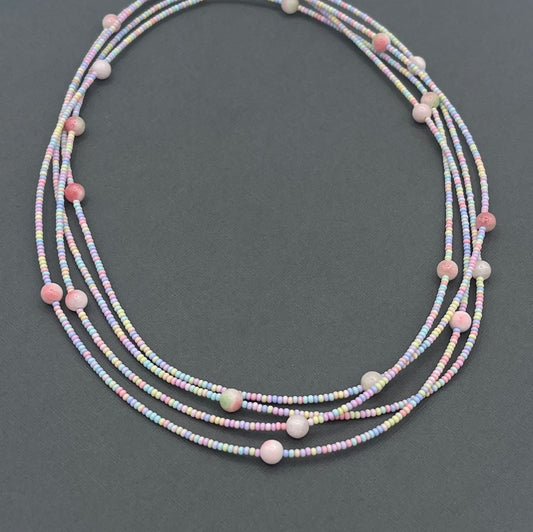 Pink Jade and Pastel Seed Bead 80" Versatile Layerable Necklace