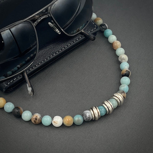 Men's/Masculine Beaded Collar Length Amazonite Gemstone Necklace with Antique Silver Accents