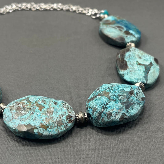 FREE SAME DAY SHiPPING! Bright Blue Bold Chunky Statement light blue Ocean Jasper Gemstone Necklace, Mother's Day Gift, Gigantic Beads