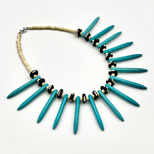 Tribal Turquoise Howlite Dagger and Bone beaded collar Length Necklace