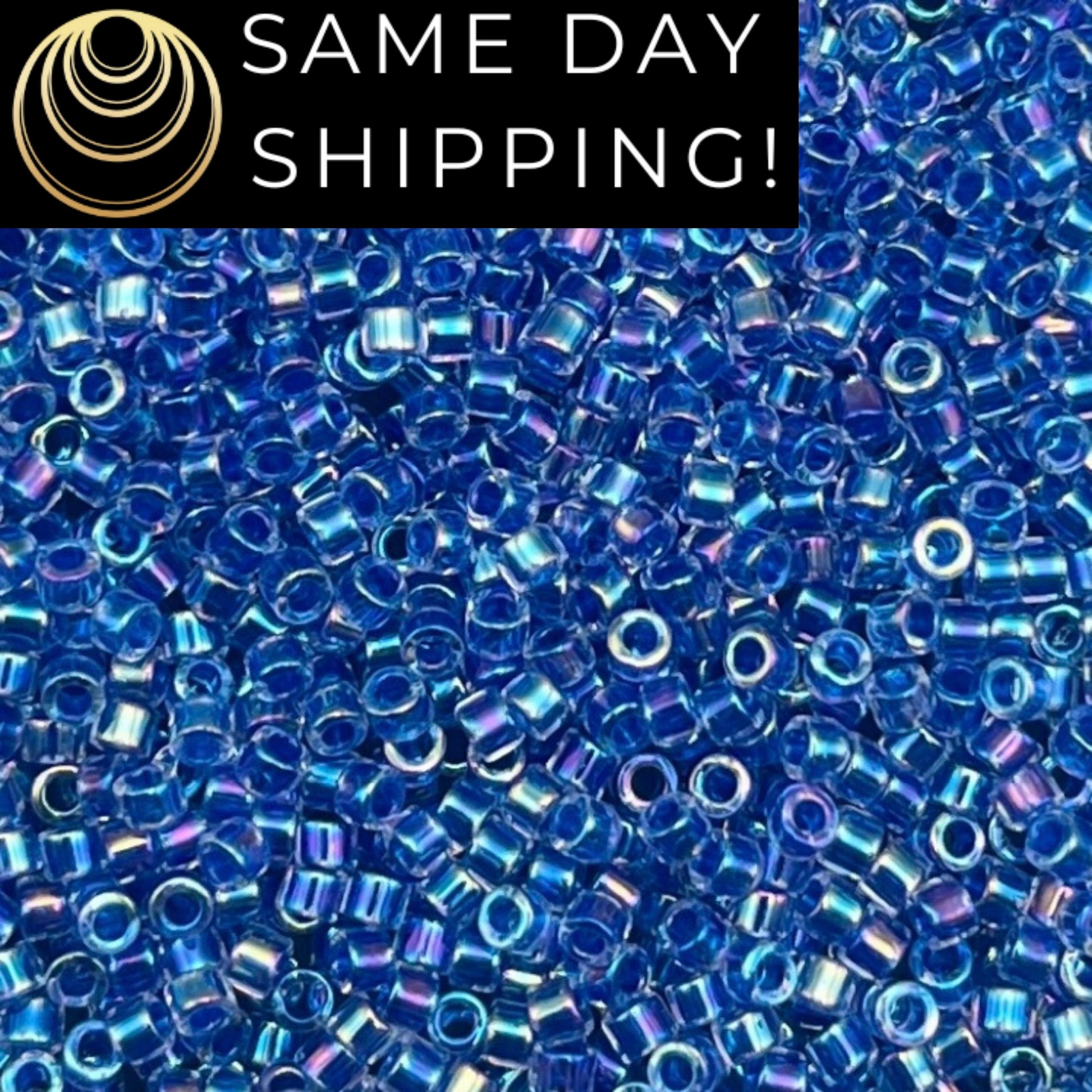 DB077 (1 gram-20 grams) Miyuki Size 11/0 Delica Beads Blue Lined Crystal AB-Free Container! Same Day Shipping!