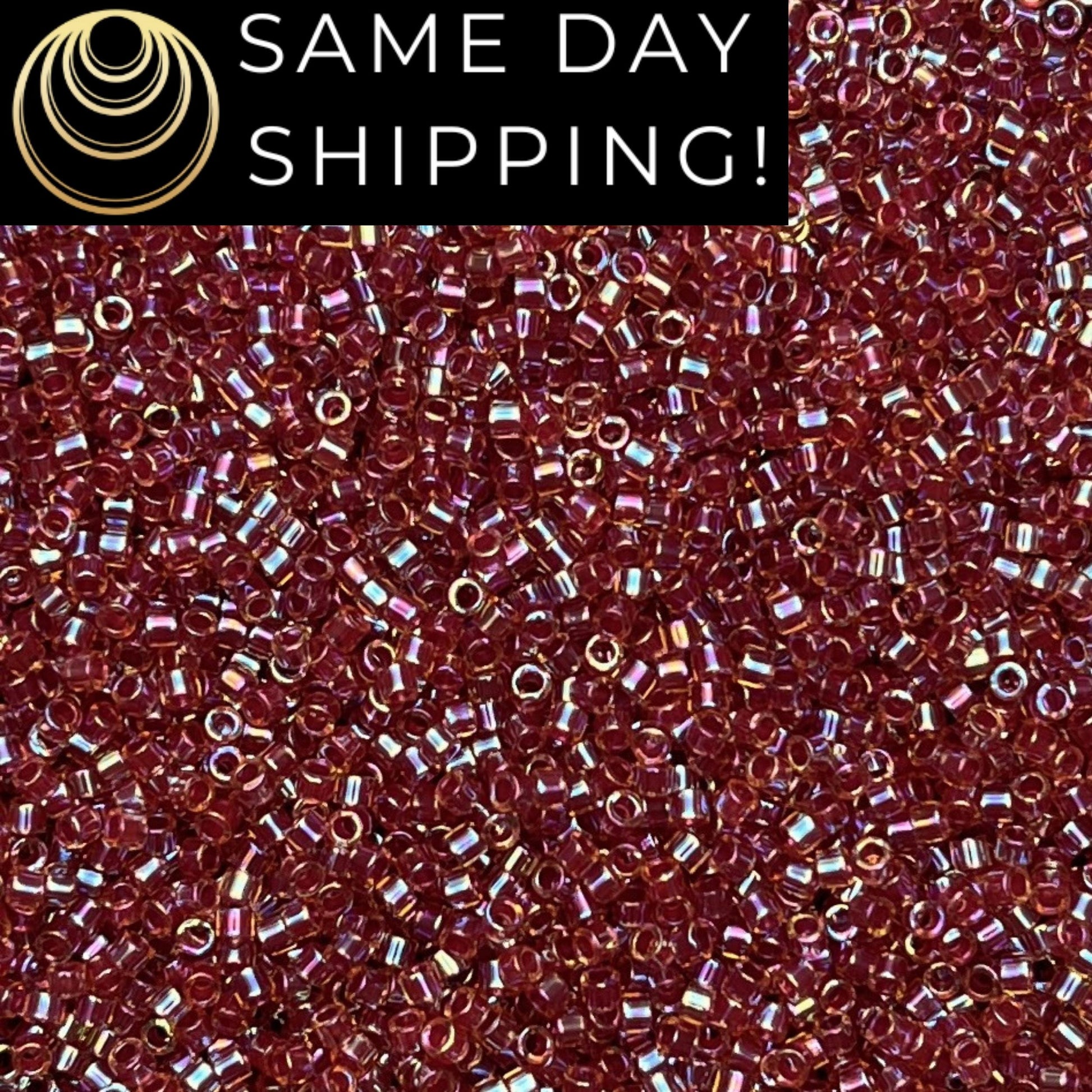 DB088 (1 gram-20 grams) Miyuki Size 11/0 Delica Beads Berry Lined Light Topaz AB-Free Container! Same Day Shipping!
