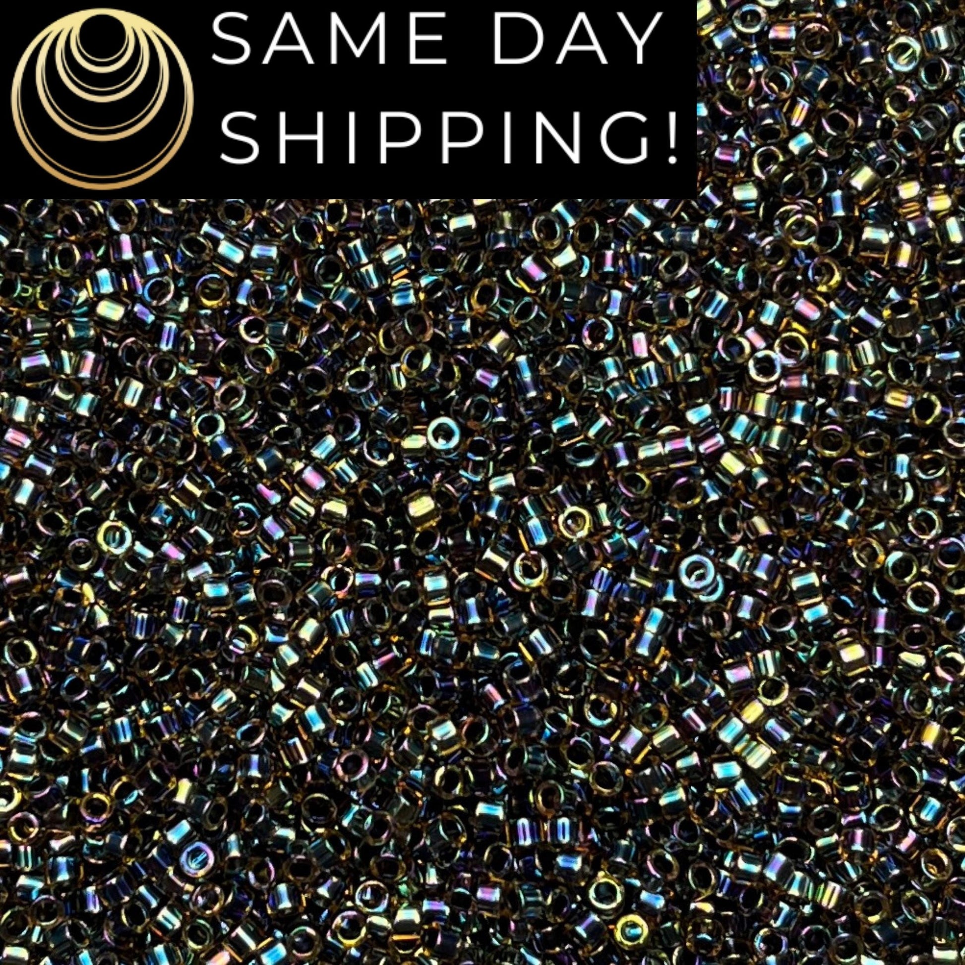 DB089 (1 gram-20 grams) Miyuki Size 11/0 Delica Beads Blue Lined Light Topaz AB-Free Container! Same Day Shipping!