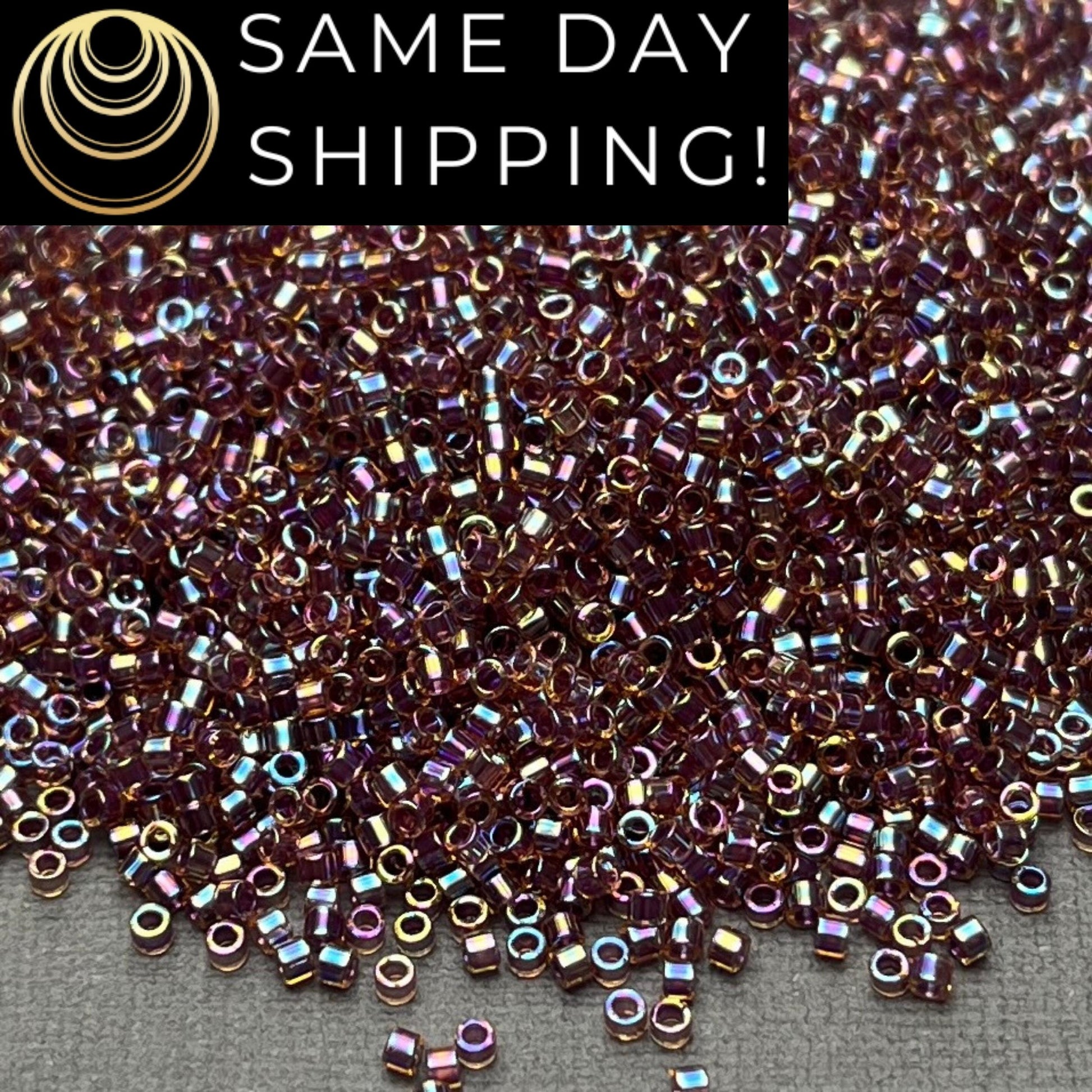 DB091 (1 gram-20 grams) Miyuki Size 11/0 Delica Beads Cranberry Lined Light Topaz AB-Free Container! Same Day Shipping!