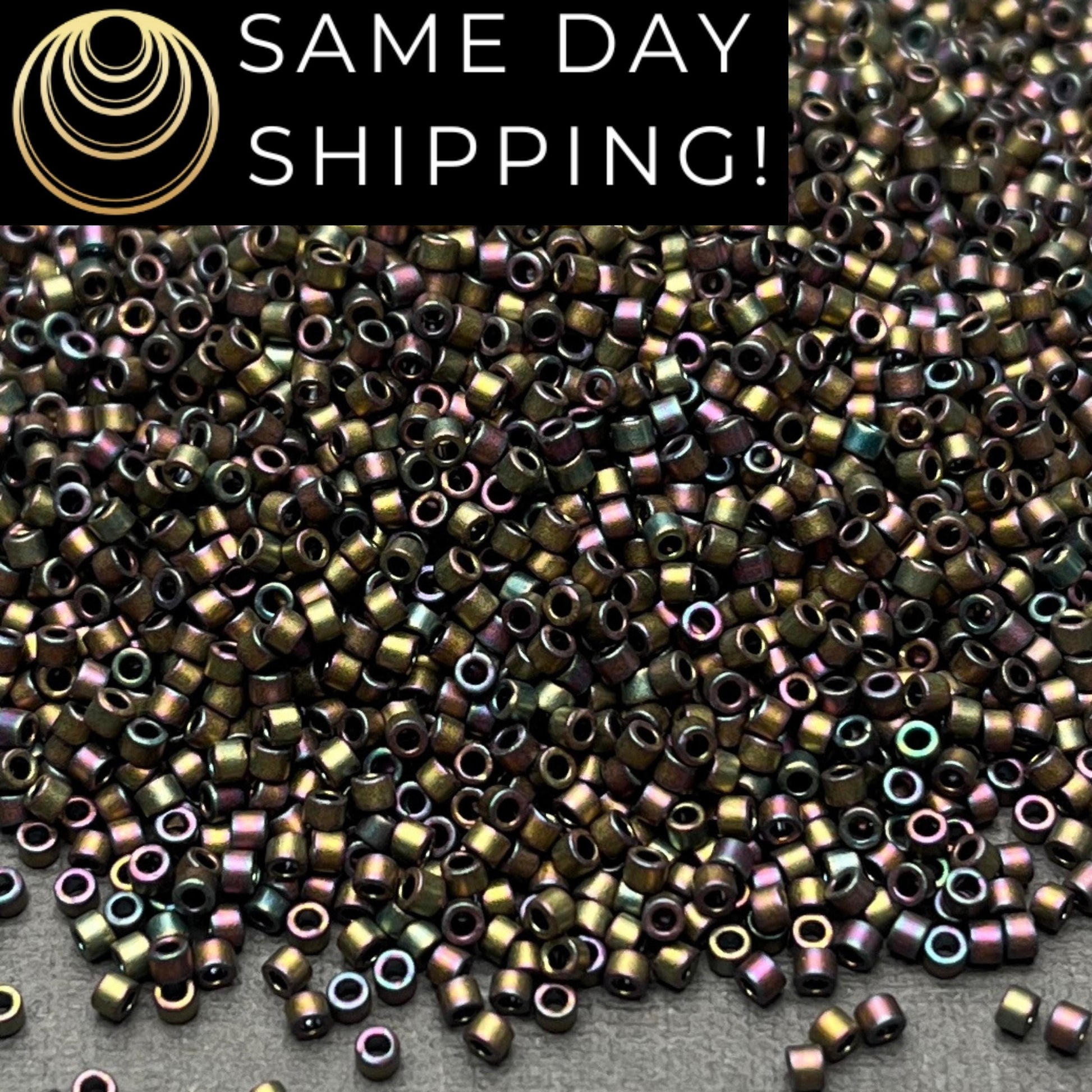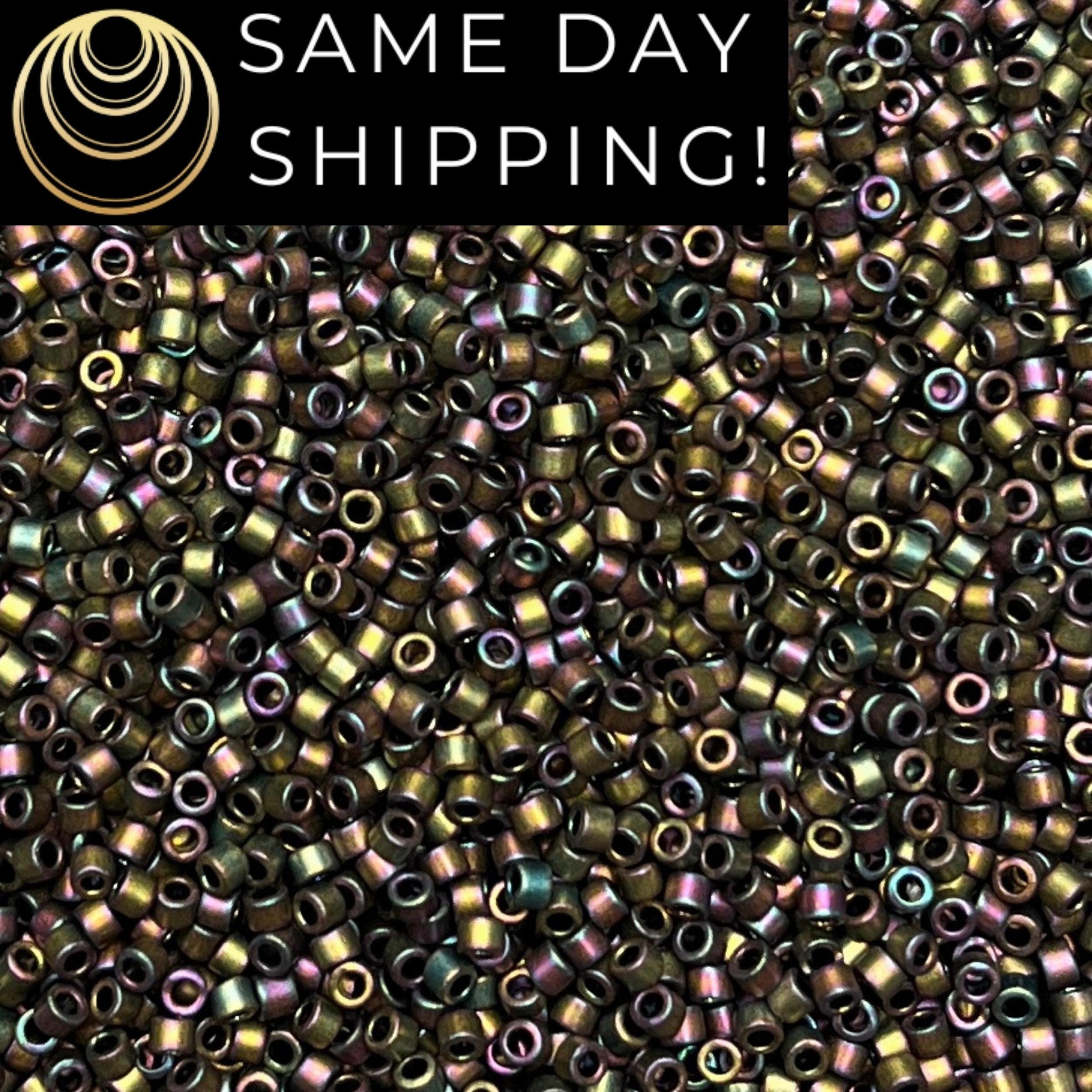 DB1055 (1 gram-20 grams) Miyuki Size 11/0 Delica Beads Metallic Gray Dusk Gold Iris-Free Container! Same Day Shipping!