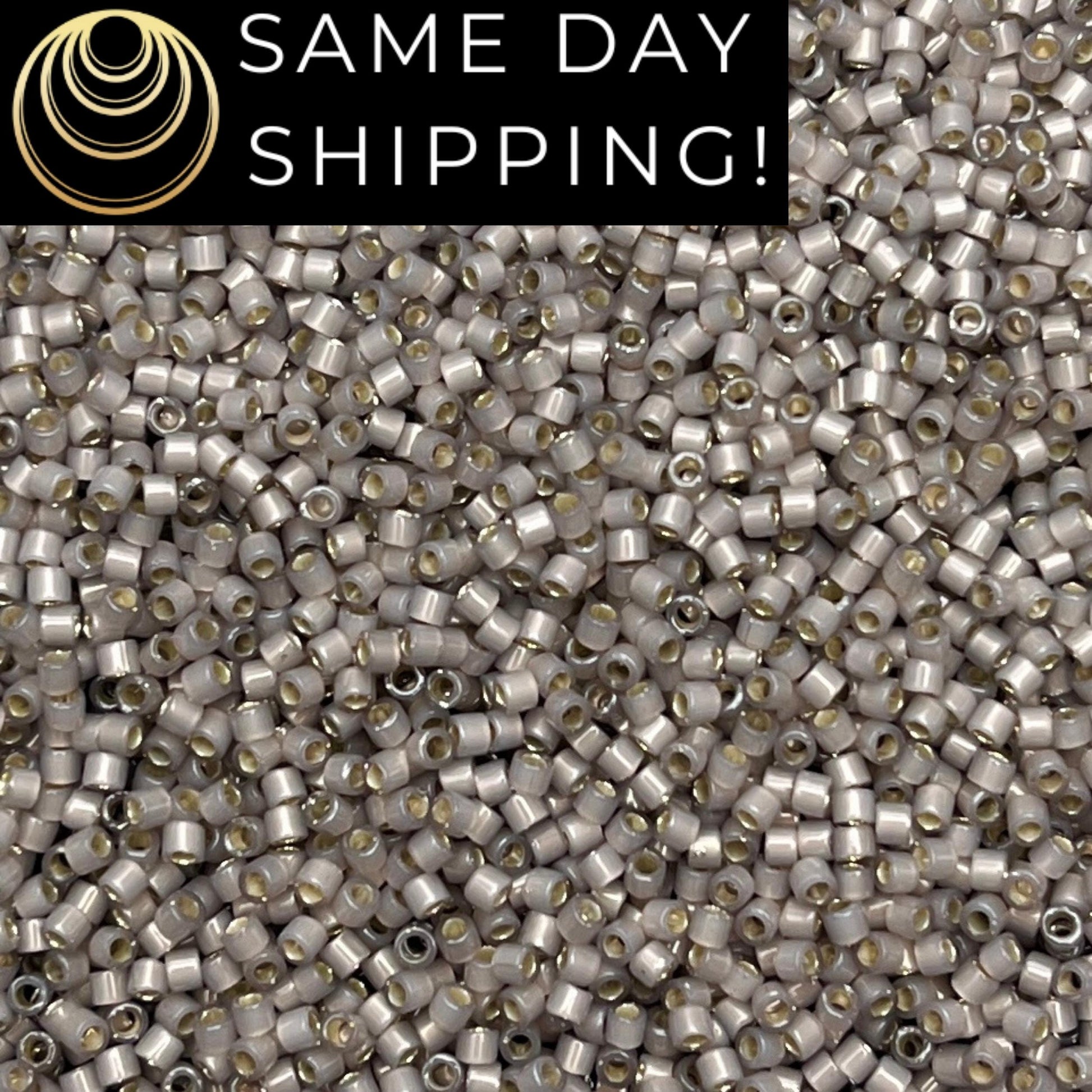 DB1456 (1 gram-20 grams) Miyuki Size 11/0 Delica Beads Silver Lined Light Taupe Opal-Free Container! Same Day Shipping!