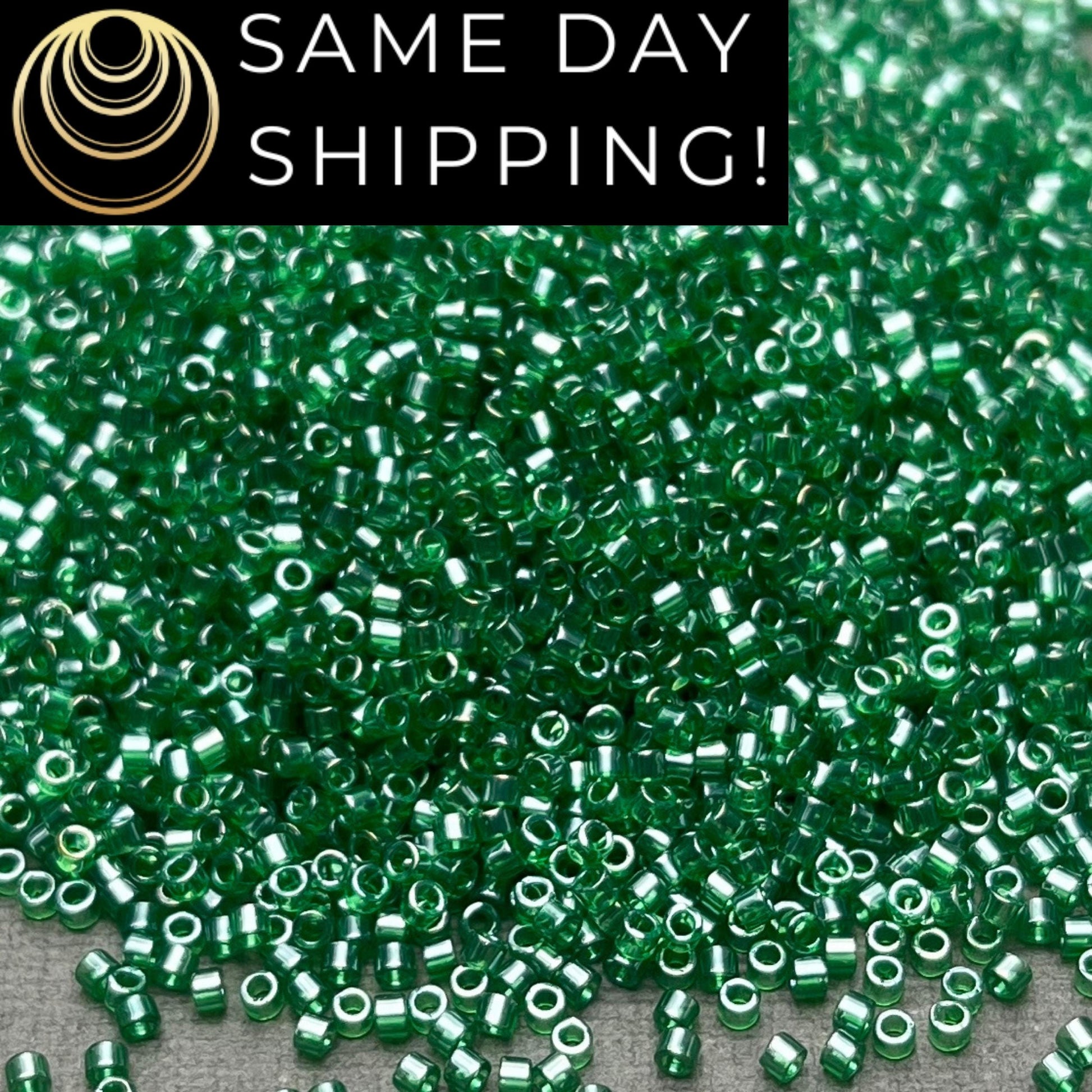 DB1889 (1 gram-20 grams) Miyuki Size 11/0 Delica Beads Transparent Green Luster-Free Container! Same Day Shipping!